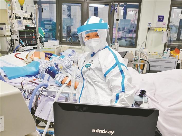 疫情早期,形勢(shì)嚴(yán)峻,隨著確診病人一批批收治,重癥病房很快進(jìn)入超負(fù)荷狀態(tài)。“最高峰的時(shí)候,我們接診了40多名患者,整個(gè)ICU病房都住滿了。重癥、危重癥患者有個(gè)特點(diǎn),就是病情變化特別快,一兩個(gè)小時(shí)病患的情況就差很遠(yuǎn),這就要求我們必須時(shí)刻嚴(yán)密監(jiān)測(cè)。因此,每次在班上,我都處于高度緊張的狀態(tài),不停地要去觀察分析各種數(shù)據(jù),要及時(shí)對(duì)患者治療進(jìn)行調(diào)整,加上穿著厚厚的防護(hù)服,處于缺氧狀態(tài),有時(shí)候確實(shí)感覺(jué)到蠻累的?!倍@樣超速運(yùn)轉(zhuǎn)的值班,一直持續(xù)了一個(gè)多月。