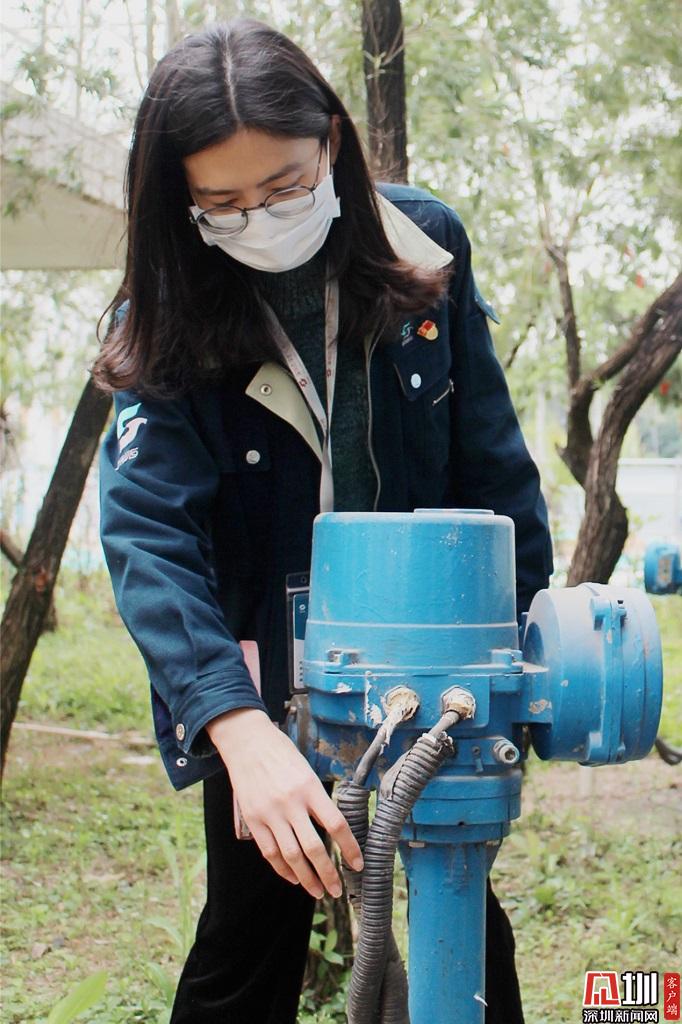 龍華水務(wù)公司紅木山水廠秦雯,正檢查濃縮池出水電動(dòng)蝶閥運(yùn)作情況。
