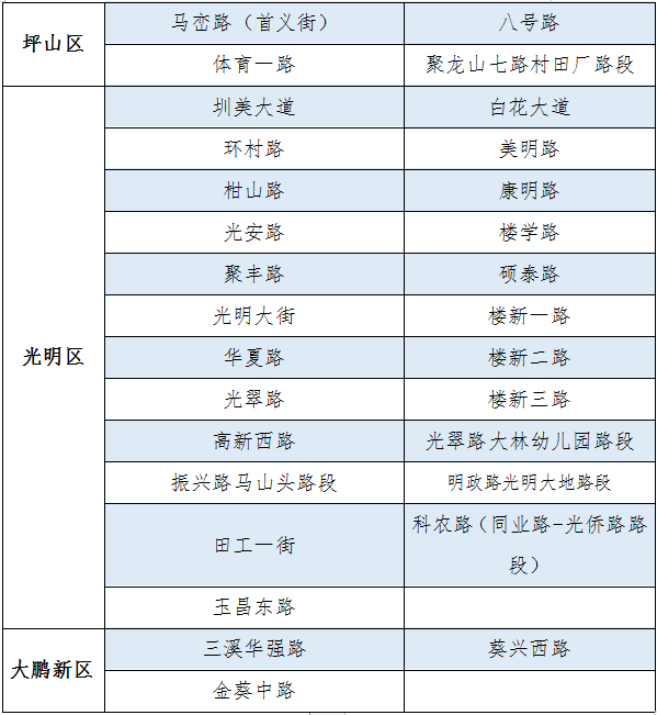 具體設置路段請看表格▼