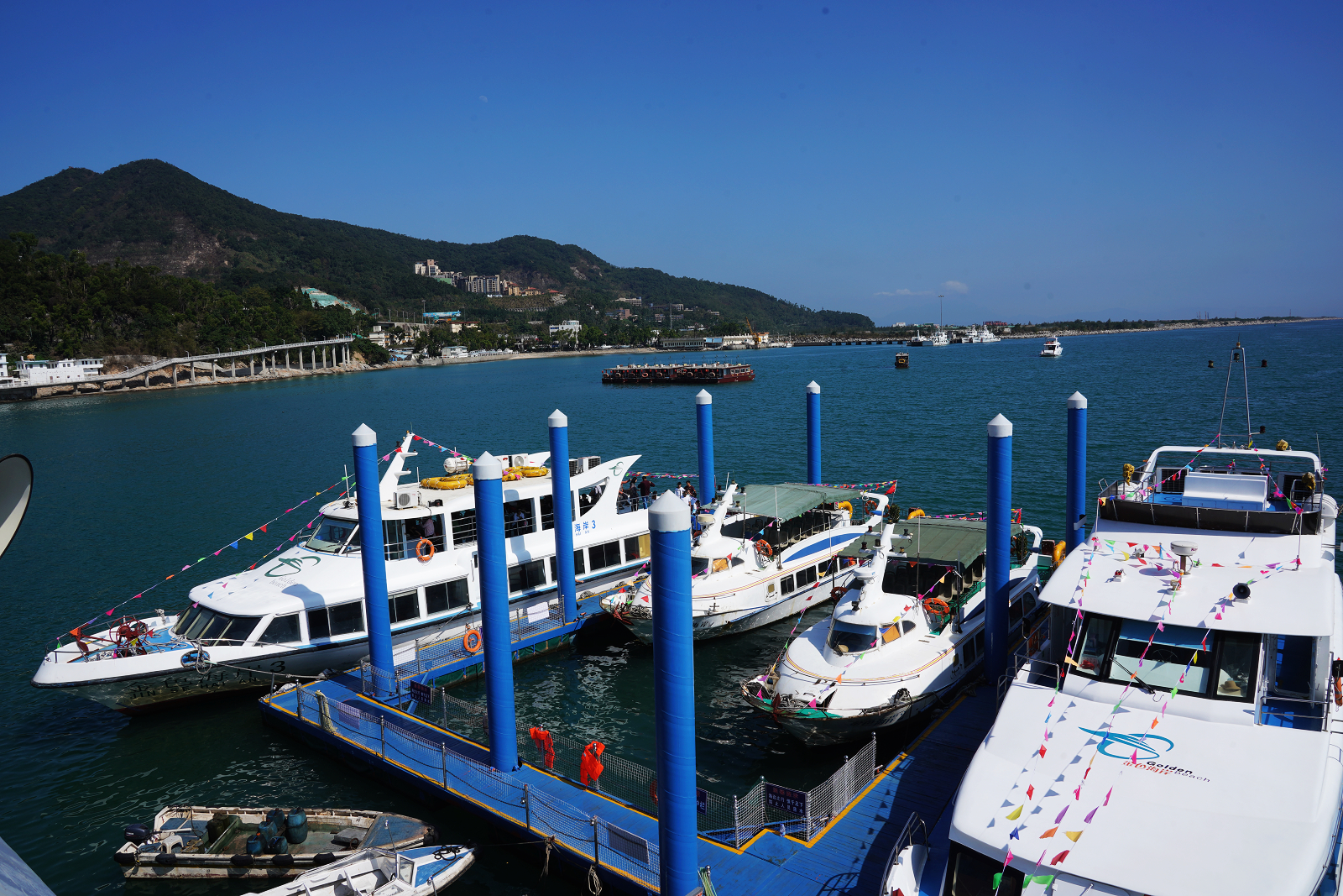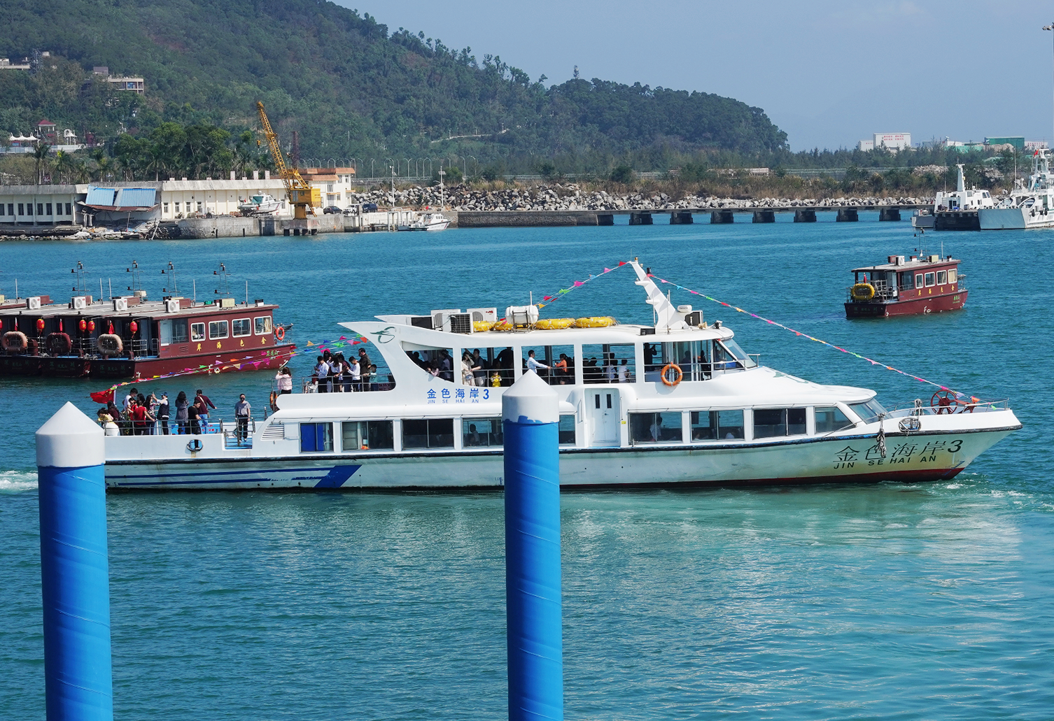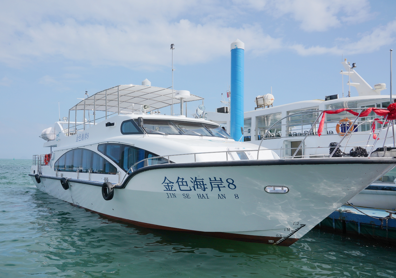 停靠在鹽田金色海岸碼頭處運營游船。韋建誠攝