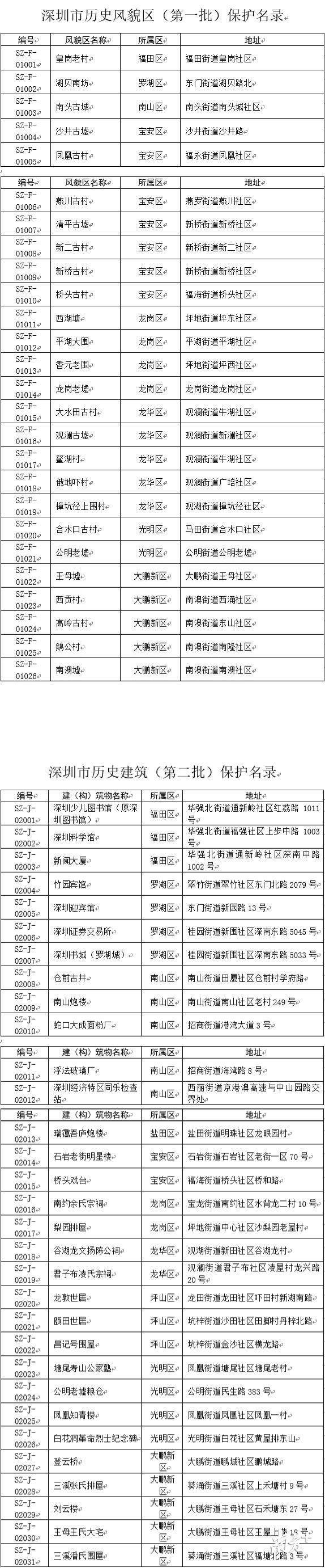 第一批深圳市歷史風(fēng)貌區(qū)中,寶安區(qū)7個(gè),龍華區(qū)5個(gè),大鵬新區(qū)5個(gè),龍崗區(qū)有4個(gè),光明區(qū)2個(gè),福田、羅湖、南山和各有1個(gè)。
