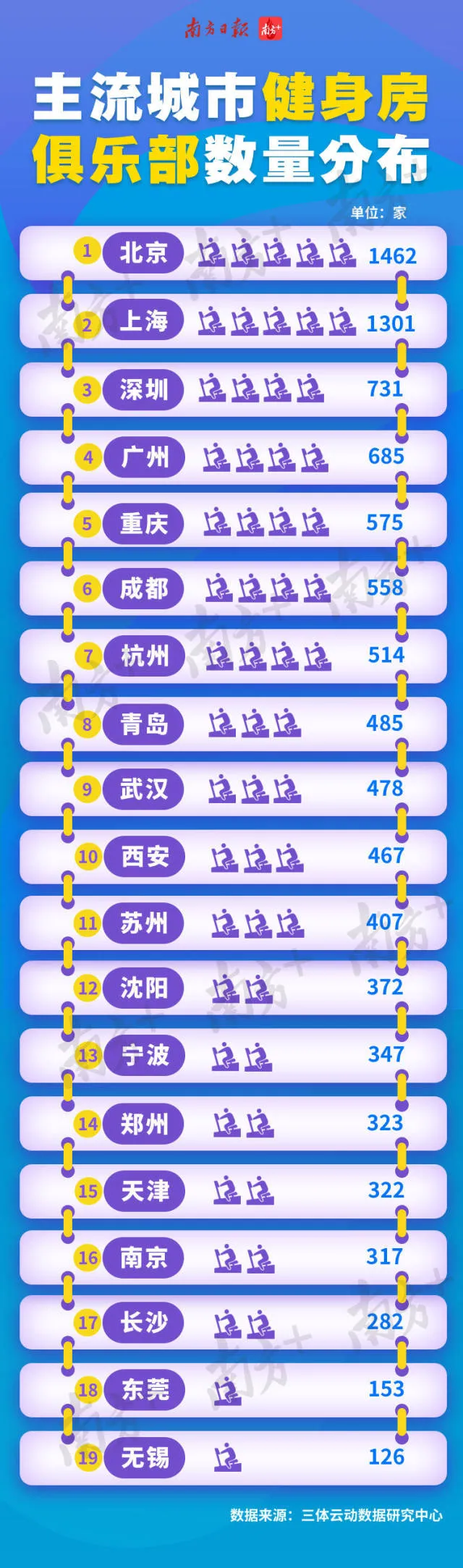 我國哪些城市健身房供應(yīng)最充足、不用排隊(duì)呢?