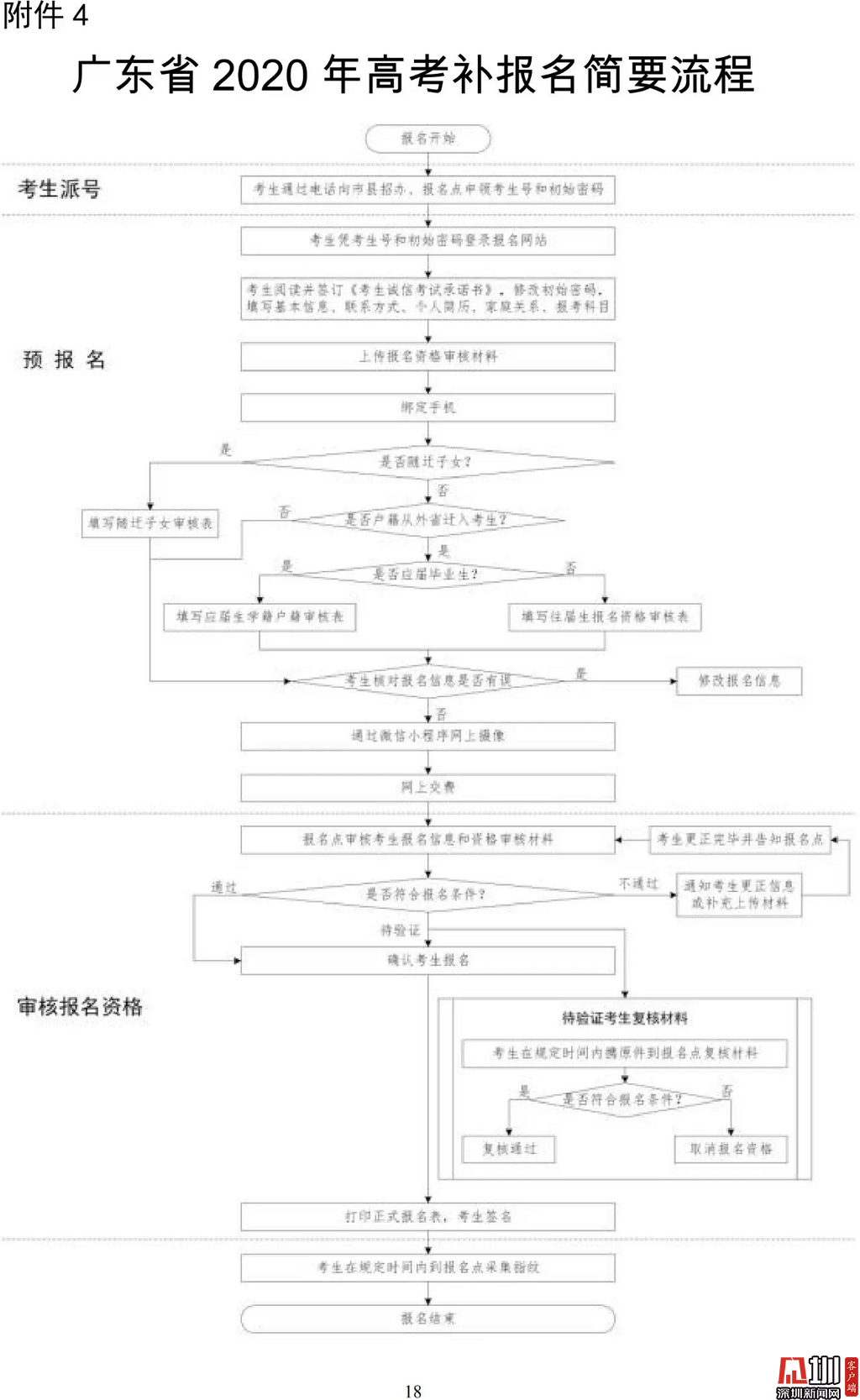 見圳客戶端·深圳新聞網(wǎng)2020年3月19日訊(見圳客戶端、深圳新聞網(wǎng)記者 金洪竹)3月18日,記者從廣東省招生委員會辦公室獲悉,為滿足退伍軍人、運動訓(xùn)練及武術(shù)與民族傳統(tǒng)體育考生、高職院校自主招生考生等符合我省高考條件,因各種原因尚未參加高考報名人員的需求,經(jīng)研究決定安排一次高考補報名,補報名時間為3月23-26日。同時,為確保考生和考試工作人員的生命安全和身體健康,減少聚集,本次高考補報名采取先線上辦理、后補驗材料的方式進(jìn)行。