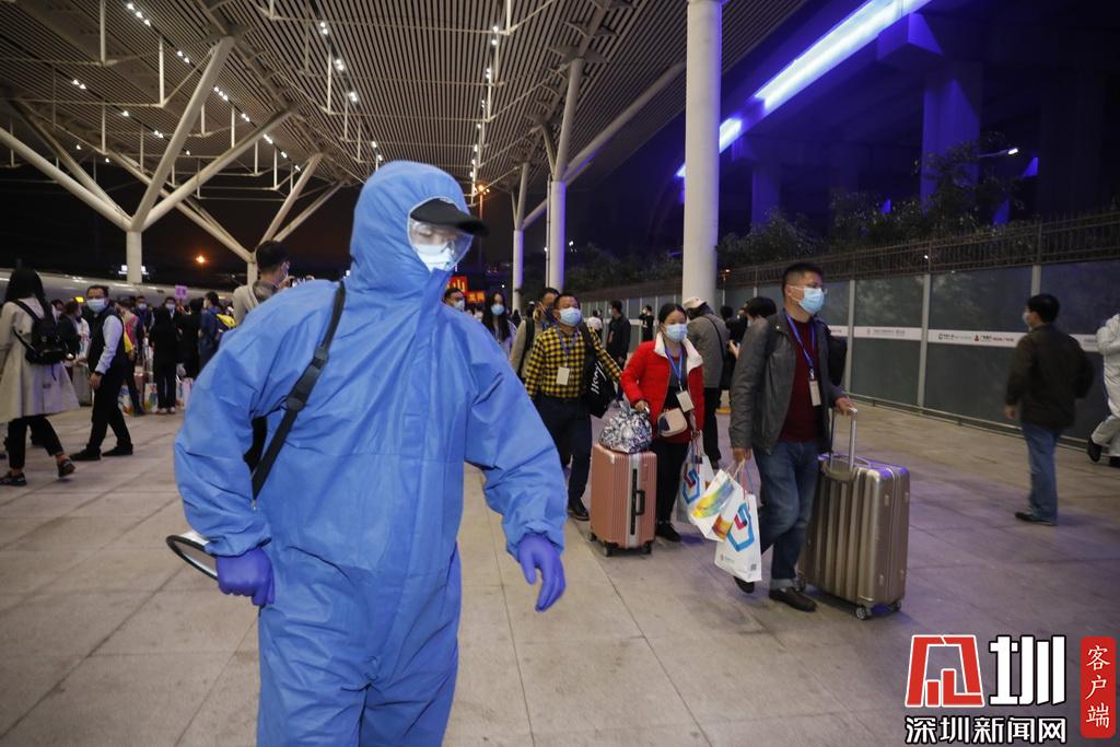 深圳北站客運(yùn)車間黨總支書記龔建力告訴記者,為了確保湖北返深專列安全??空九_,深圳北站提前加強(qiáng)了清潔工作,并增派相關(guān)工作人員,確保返深湖北籍乘客有序安全出站。