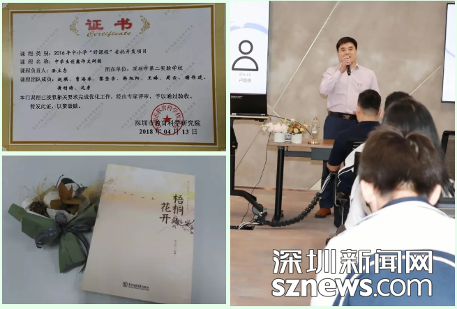 多年來,孫立志老師一直努力實(shí)踐“快樂語文”“和語文生活化,生活語文化”的大語文教學(xué)理念,提倡并身體力行在語文教學(xué)實(shí)踐中,創(chuàng)設(shè)生活化的情境,讓語文教學(xué)與社會(huì)實(shí)踐緊密結(jié)合,激發(fā)學(xué)生興趣,引導(dǎo)學(xué)生深入創(chuàng)新思考和個(gè)性表達(dá),真正形成較強(qiáng)的語文能力,引導(dǎo)學(xué)生成長為有學(xué)養(yǎng)、有高度、有見地、有情懷的大寫的人。他認(rèn)為,由于語文學(xué)科的工具性和人文性兼具的特性,語文教學(xué)對老師的要求較高,語文老師除了要做淵博的閱讀者、深刻的思想者、勤奮的寫作者、敬業(yè)的教育者,還要努力做一個(gè)興愛好廣泛、生動(dòng)有趣的學(xué)生心理上的“同齡人”,千方百計(jì)引導(dǎo)學(xué)生體驗(yàn)閱讀與思考,創(chuàng)新與寫作的樂趣,從而激發(fā)學(xué)生的語文學(xué)習(xí)的內(nèi)驅(qū)力,真正達(dá)到“教是為了不教”的目的。為此,孫立志老師在勤奮教學(xué)并取得優(yōu)異成績的同時(shí),努力讓語文教學(xué)真正在學(xué)生人生打下深深印記,奠基學(xué)生終生發(fā)展,他做了很多探索:開系列講座給學(xué)生講《春秋戰(zhàn)國——牛人的黃金時(shí)代》,開發(fā)全市繼續(xù)教育課給老師講《東周典型人物研究》,耕耘微信公號笑談歷史風(fēng)云,開發(fā)深圳市好課程《中學(xué)生創(chuàng)意作文訓(xùn)練》,帶領(lǐng)學(xué)生公開出版深圳第一部班級學(xué)生集體著作《梧桐花開》,指導(dǎo)大批學(xué)生在各級各類刊物發(fā)表文章,在各類語文比賽樂促教,以歌助學(xué),只不過是孫立志老師教學(xué)探索創(chuàng)新的一葉一花,相信師者每一點(diǎn)守責(zé)盡心的努力,都會(huì)助力學(xué)生人生之樹上結(jié)出香甜的果實(shí)。