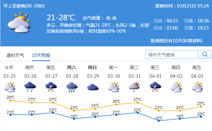 見圳客戶端·深圳新聞網(wǎng)2020年3月25日訊 近期我市氣溫明顯上升,連續(xù)3天最高氣溫達(dá)28℃左右。今日深圳多云,早晚有輕霧;氣溫21-28℃;東風(fēng)2-3級(jí),東部沿海和高地陣風(fēng)6級(jí);相對(duì)濕度60%-95%。