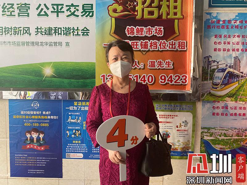 福田區(qū)人大代表劉霞為農貿市場打分。(滿分為5分)