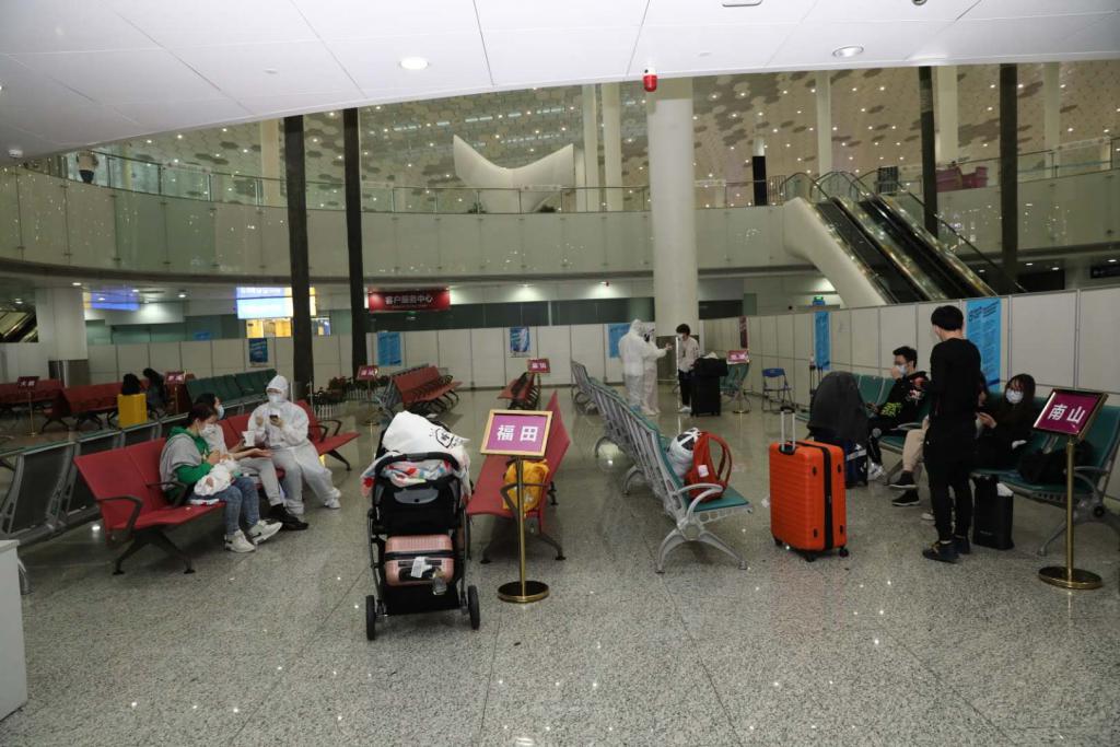 "藍色"標簽代表目的地為廣東省內(nèi)(不含深圳市)的旅客,將在"藍色"1號休息大廳等待,隨后乘坐大巴車由各地市專車接回;"橙色"標簽代表目的地為廣東省外及寶安區(qū)的旅客,將在"橙色"2號休息大廳等待,隨后乘坐大巴車前往寶安區(qū)的醫(yī)學觀察安置酒店;"紫色"標簽代表目的地為深圳各區(qū)(不含寶安區(qū))的旅客,將在"紫色"3號休息大廳等待,乘坐大巴車前往深圳灣口岸由各區(qū)專車接回,統(tǒng)一進行醫(yī)學觀察。