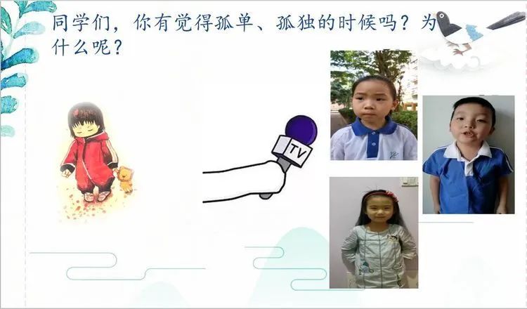 在劉老師的課堂上,她帶來《樹和喜鵲》故事中主人公小喜鵲日記本獎勵讀書流利、情感充沛的孩子們。通過小喜鵲的日記,婉儀老師將課堂成功地轉(zhuǎn)接到課文的文本當(dāng)中。進(jìn)而有對文章中出現(xiàn)的事物、事物所具備的特點(diǎn)展開了細(xì)致而有趣的學(xué)習(xí)。期間,婉儀老師還化身小記者,用三段對于自己學(xué)生的采訪視頻,讓學(xué)生對于“孤單”二字有了更加深刻的理解。