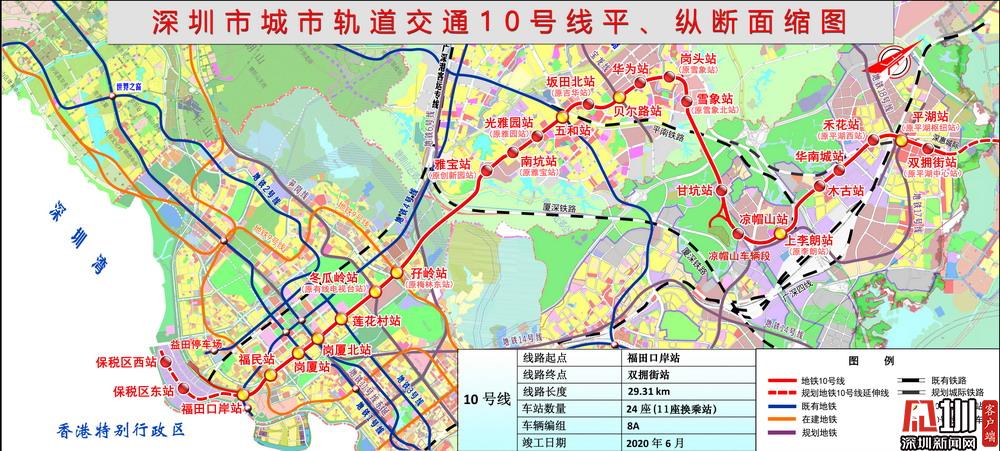 地鐵10號線起于福田口岸站,途經(jīng)福田區(qū)、龍崗區(qū),止于雙擁街站,線路全長29.31公里,共設24座車站,全部為地下車站。地鐵10號線兼具干線和局域線功能,是深圳市首條南北向采用8A編組的線路,并預留“南聯(lián)北拓”條件,成為又一條“南北動脈”,建成后,福田口岸到平湖僅用45分鐘即可到達,將大大緩解福田中心區(qū)至坂田段的交通壓力。