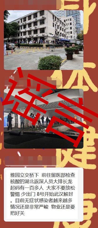 這則網(wǎng)帖稱:“在羅湖區(qū)雅園立交橋下,前往留醫(yī)部檢查核酸的湖北返深人員‘排長龍’。無癥狀感染者越來越多,情況非常嚴峻,提醒物業(yè)把好關(guān)。”根據(jù)網(wǎng)傳的兩張照片,記者發(fā)現(xiàn)拍攝地點分別為深圳市人民醫(yī)院院內(nèi)以及疑似雅園立交橋洞下。