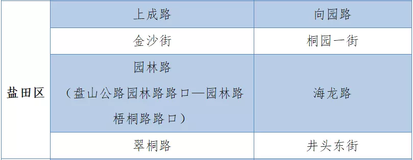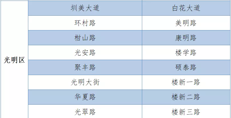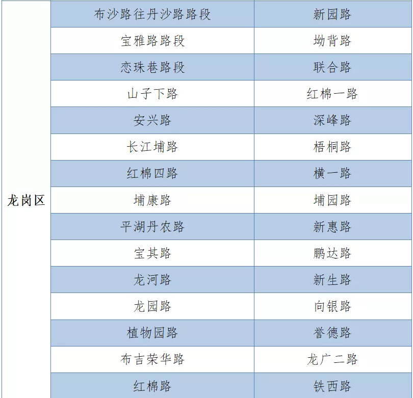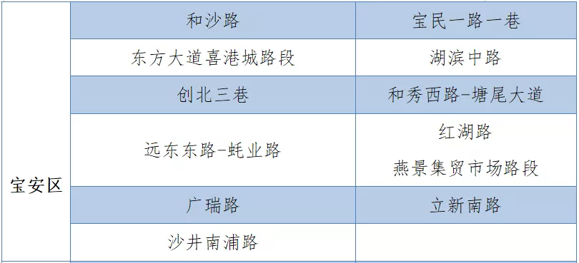具體設(shè)置路段請看表格