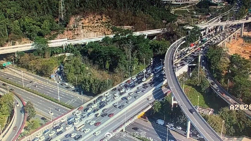▲深圳交警發(fā)布多個路段的早高峰情況,可見車流量十分之大