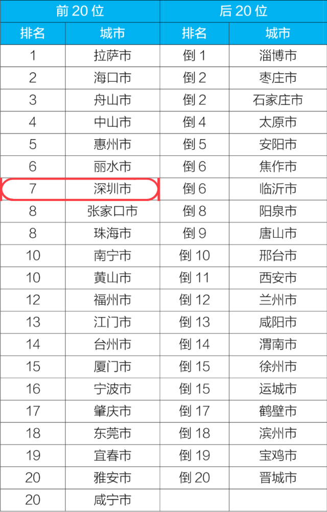 深圳3月空氣質(zhì)量全國排名第7