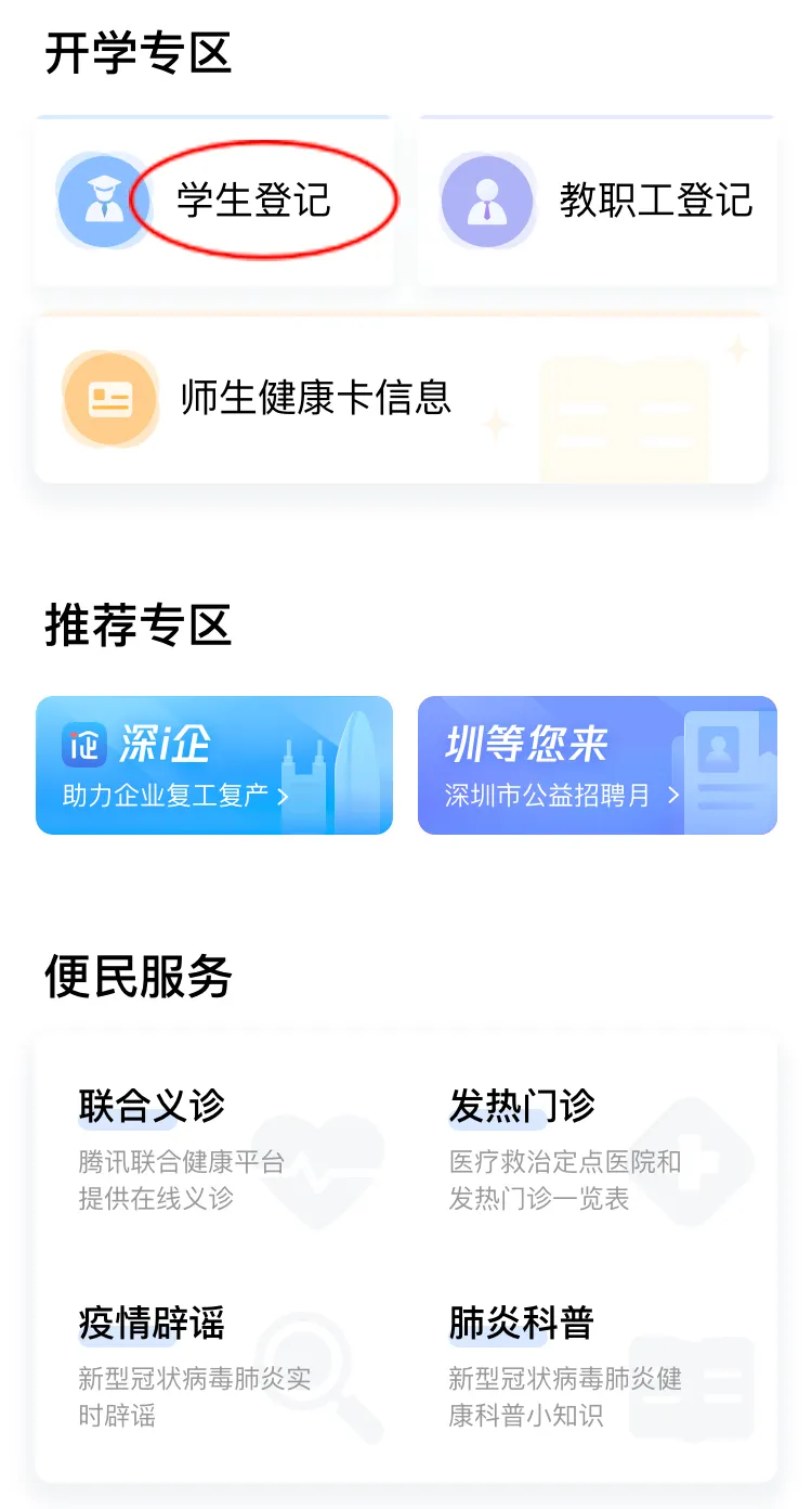 在開學專區(qū),點擊“學生登記”進行自主申報和實名認證。