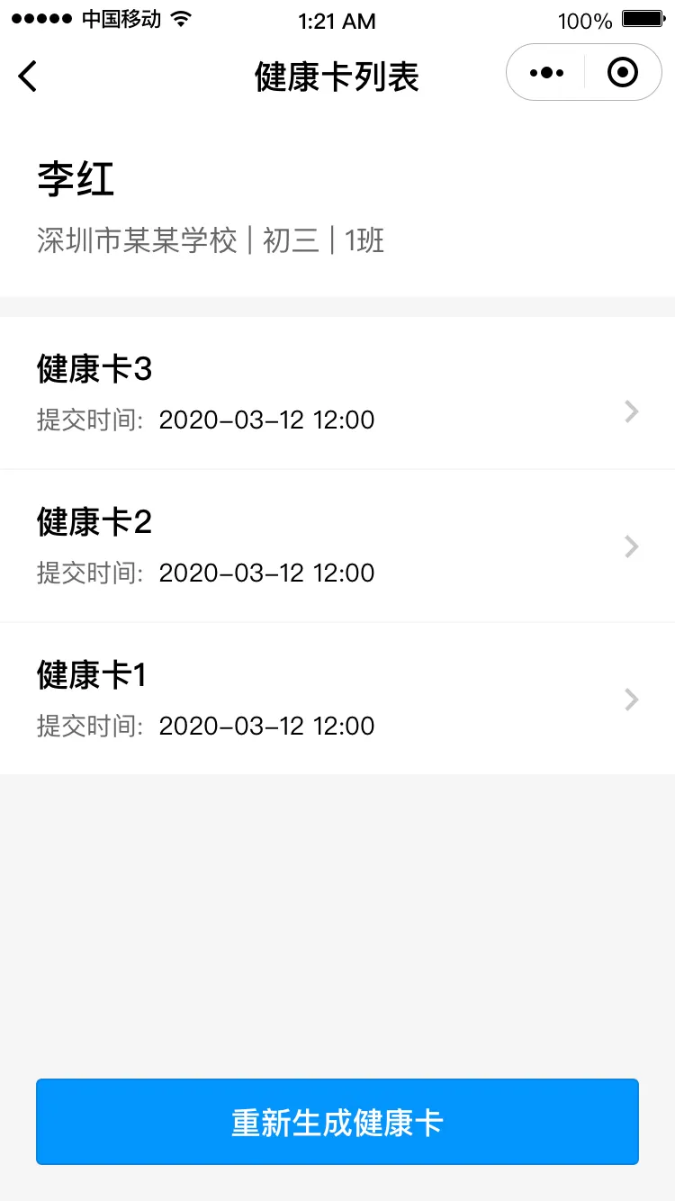 若不符合返校條件,需在符合條件后,點擊“重新生成健康卡”再次申報。