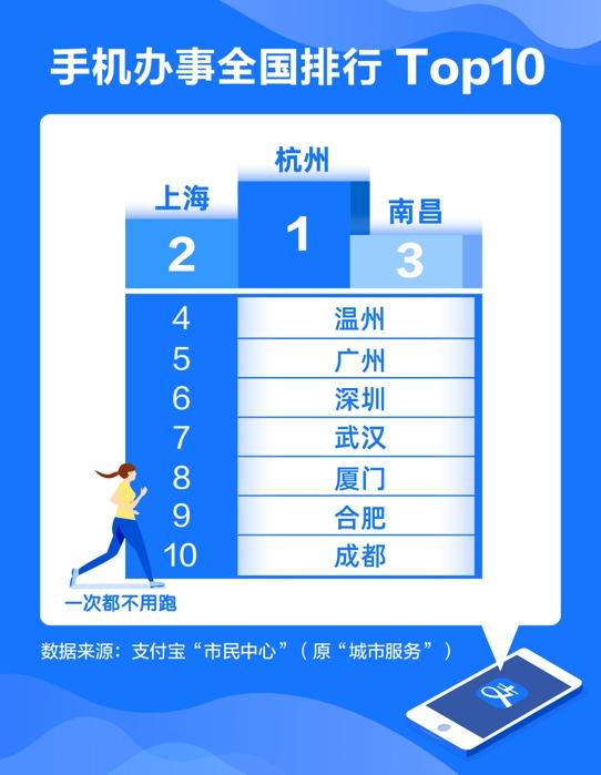 4月21日,支付寶“市民中心”發(fā)布的全國手機(jī)辦事排行榜顯示,已有超過300城的市民服務(wù)能在手機(jī)上完成。其中,杭州、上海、南昌等地的市民能在手機(jī)上辦的事最多。