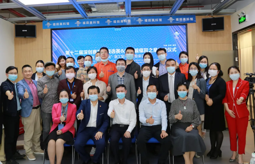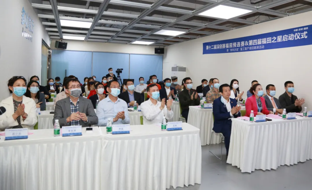 隨后,范坤與福田區(qū)科技創(chuàng)新局局長張忠暉等共同上臺啟動第十二屆深創(chuàng)賽福田預選賽暨第四屆“福田之星”大賽,同時為福田高科館授予“福田科技港灣”牌匾。
