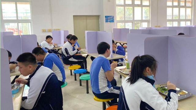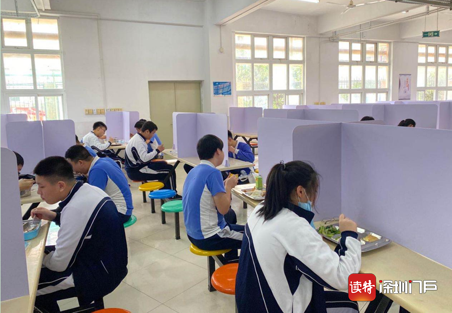 深圳特區(qū)報(bào)2020年4月27日訊 4月27日,深圳高三、初三學(xué)子返校。食堂是校園防控工作的重點(diǎn),中午時(shí)分,學(xué)生就餐開始,實(shí)行錯(cuò)峰就餐、分區(qū)就餐。有的學(xué)校將每張餐桌用有機(jī)玻璃隔板分隔用餐區(qū)域,有的學(xué)校在空間足夠的條件下實(shí)行單人單桌,按號就座。