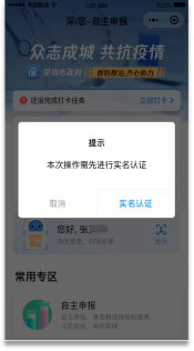 ①在首頁開學(xué)專區(qū)點擊“學(xué)生登記”,若家長之前未進行自主申報和實名認(rèn)證,系統(tǒng)將彈出提示,請家長本人先完成自主申報和實名認(rèn)證。