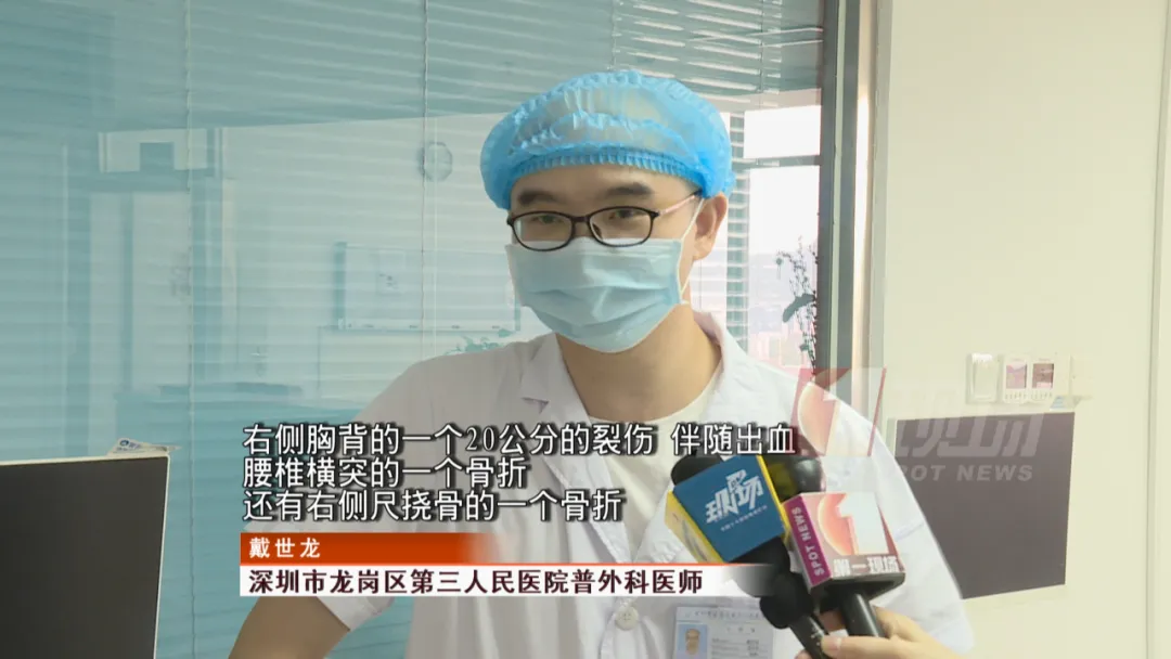 隨后,黃師傅被送往龍崗區(qū)第三人民醫(yī)院救治。主治醫(yī)生戴世龍表示,黃師傅沒有生命危險(xiǎn),但是至少需要三個(gè)月才能痊愈。