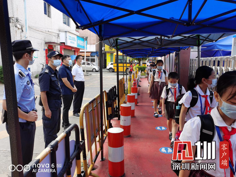 教育局、派出所、社康中心中心工作人員為學(xué)生入校護(hù)航。