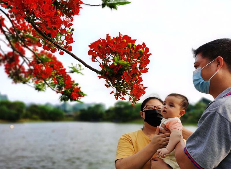 鳳凰木又名火樹、紅花楹,由于其開花時(shí)"葉如飛凰之羽,花若丹鳳之冠",因而得名「鳳凰樹」。每年5月至7月,是鳳凰樹開花的時(shí)節(jié)。在鵬城公園、道路兩旁到處可見鳳凰花盛開,當(dāng)下鳳凰花開正燦爛,錦簇花團(tuán)紅似火,成為鵬城亮麗的風(fēng)景線。圖為龍崗大運(yùn)中心鳳凰樹花開吸引市觀賞拍照。