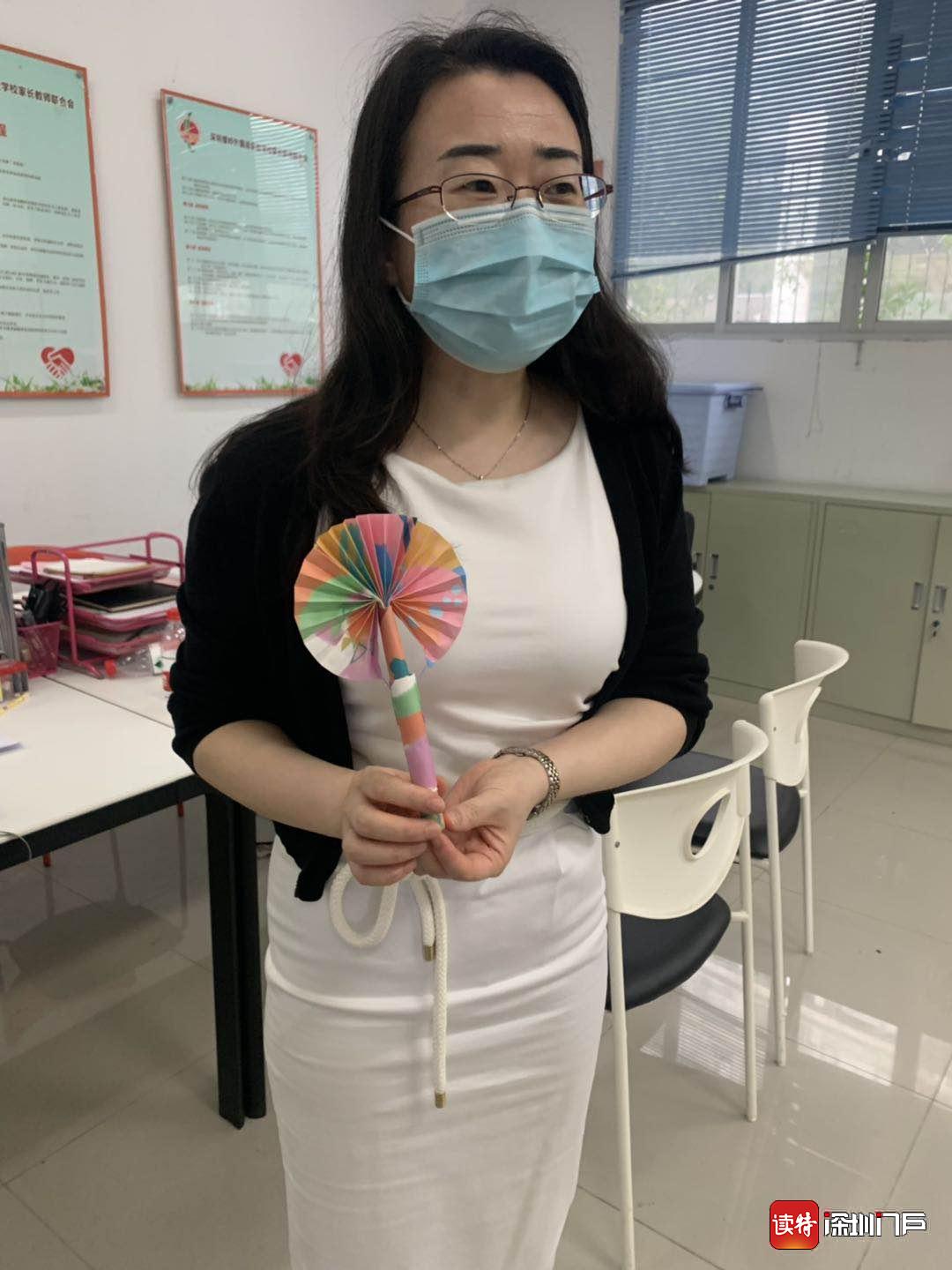 螺嶺外國(guó)語(yǔ)實(shí)驗(yàn)學(xué)校三年級(jí)(12)班的學(xué)生林子軒專門為老師做了小折扇,一進(jìn)校門就送到了老師手里,怕老師熱。