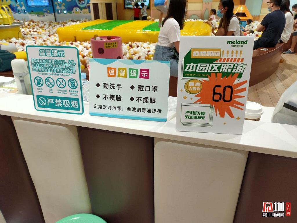 場所在入口和游樂設(shè)施醒目處有游玩的注意事項(xiàng)和警告,入口處有人員進(jìn)行體溫監(jiān)測和消毒工作,有工作人員在一旁看護(hù)兒童,場所整體安全性良好。