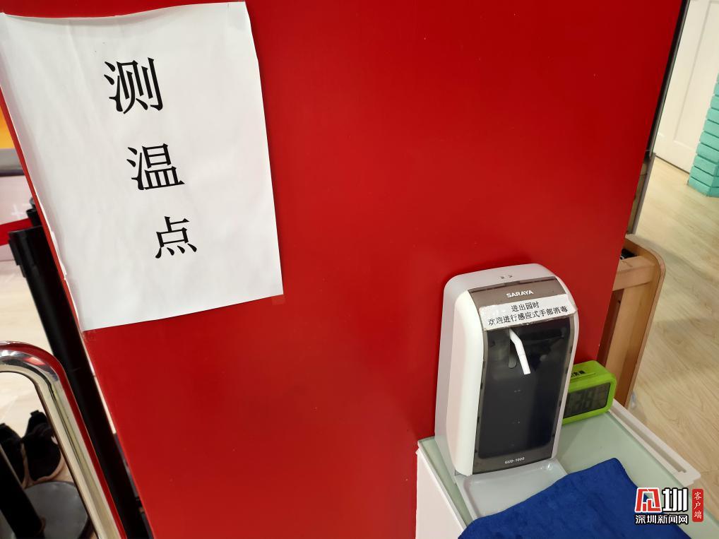 游樂場入口有專人測量體溫并記錄,為每一位進(jìn)入的顧客進(jìn)行酒精殺毒。