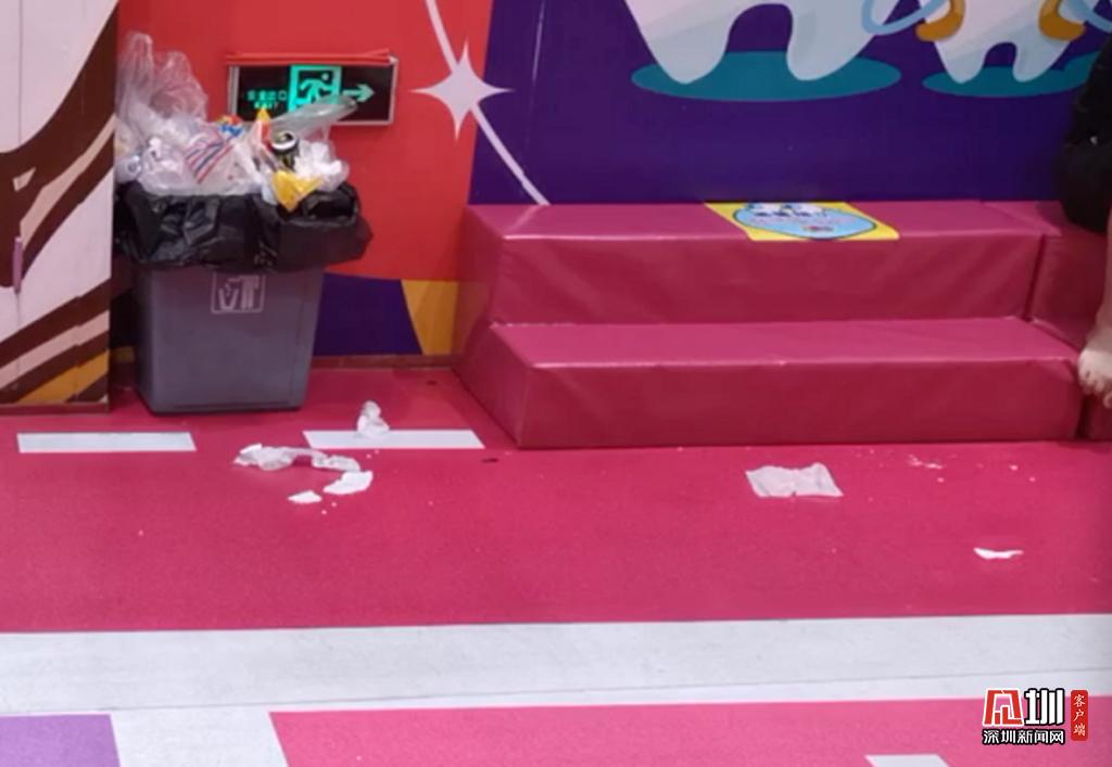 游樂場有家長休息區(qū),在前臺(tái)還有充電寶租借。但是記者注意到,在休息區(qū)角落不少垃圾散落在地面,垃圾桶裝滿了工作人員也沒有及時(shí)過來清理。