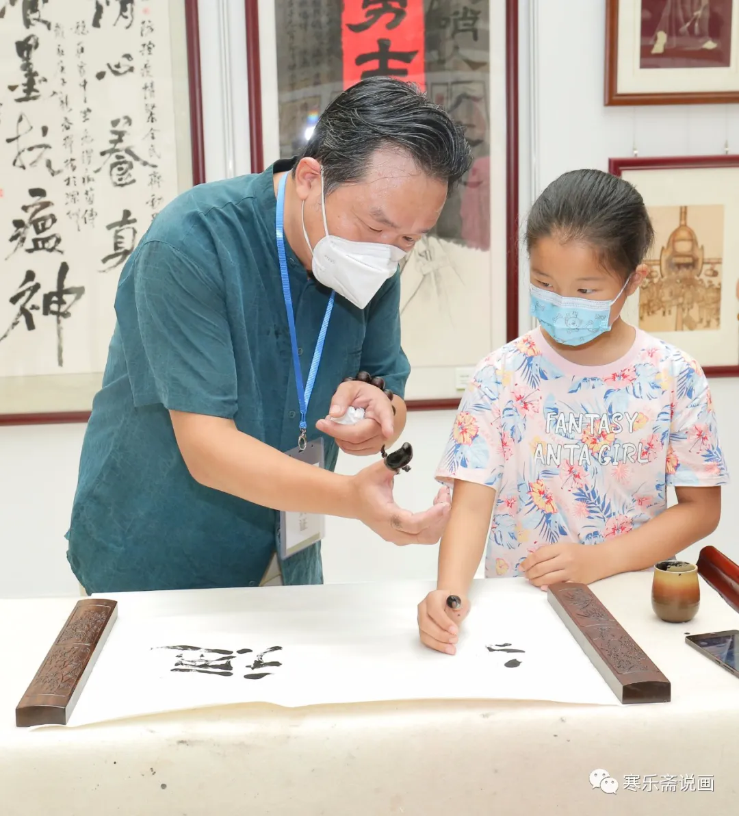 王和平在活動(dòng)現(xiàn)場(chǎng)教授孩子們用手指寫(xiě)字的要領(lǐng)。