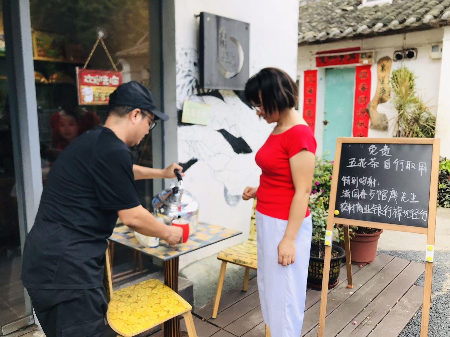 “夏古草、金銀花、菊花……”小林哥精心配制的“愛心涼茶”受到許多村民、駐村藝術家以及很多外來游客的歡迎。而為市民提供免費“愛心涼茶”的事跡,感動許多人的同時,更影響了周圍一批熱心的企業(yè),他們紛紛加入涼茶的善意隊伍中參與愛心接力,為上圍“愛心涼茶”添磚加瓦,形成了“善的循環(huán)”。