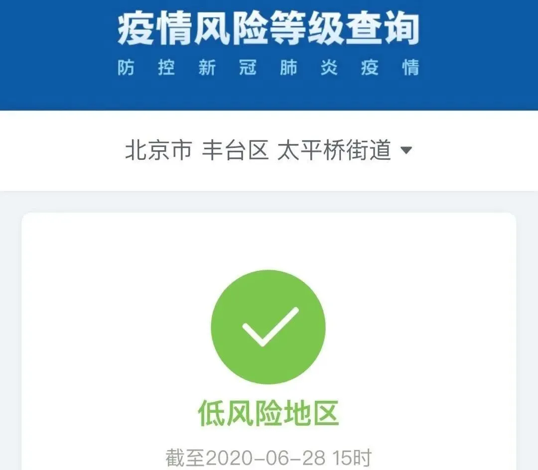 截至6月28日15時,北京市西城區(qū)金融街街道、豐臺區(qū)太平橋街道由中風險地區(qū)變更為低風險地區(qū)。