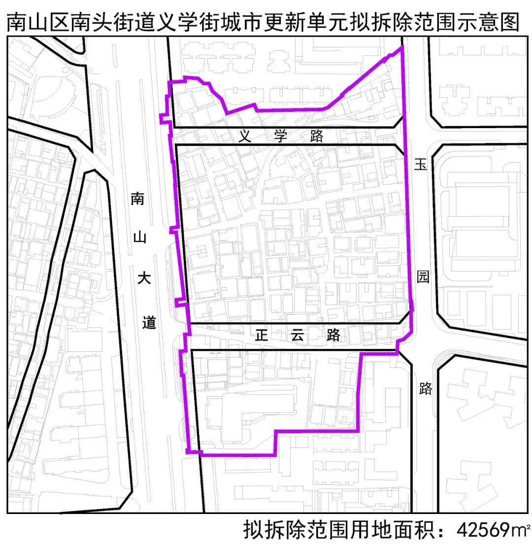 △南山區(qū)南頭街道義學(xué)街城市更新單元擬拆除范圍示意圖