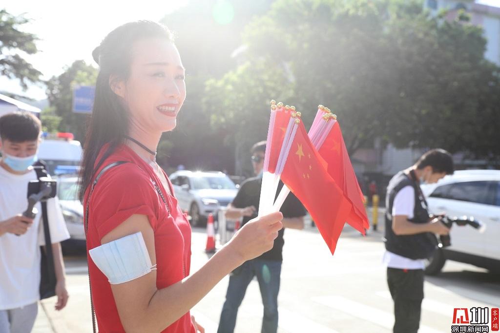 一名家長自費(fèi)購買100個(gè)小國旗發(fā)放給考生,為他們加油助威。