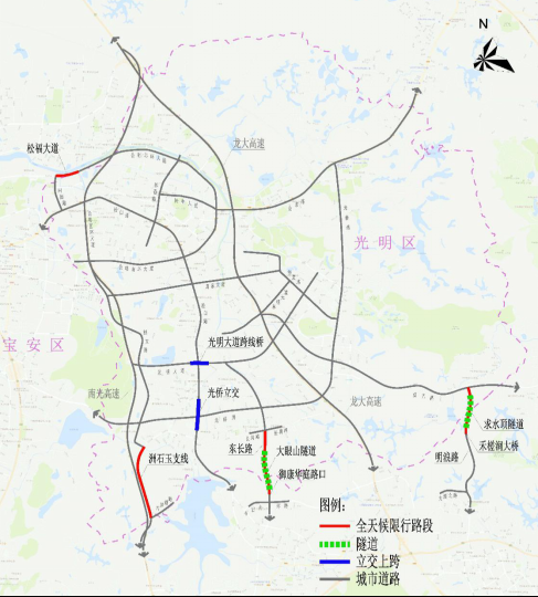 其中,松白路、重慶路、光明大道未列入寶安、光明區(qū)電動二輪車禁行道路。