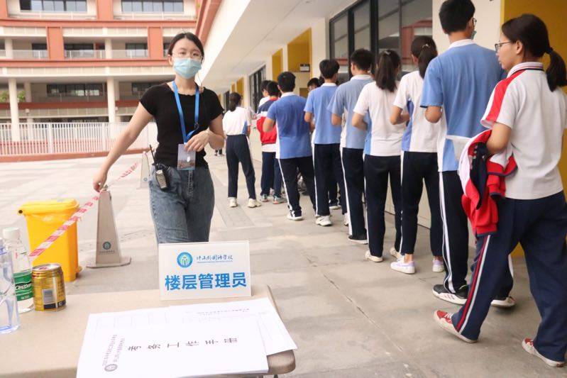 坪山同心外國語學(xué)校的考生進入教室。(記者焦子宇耿超逸)