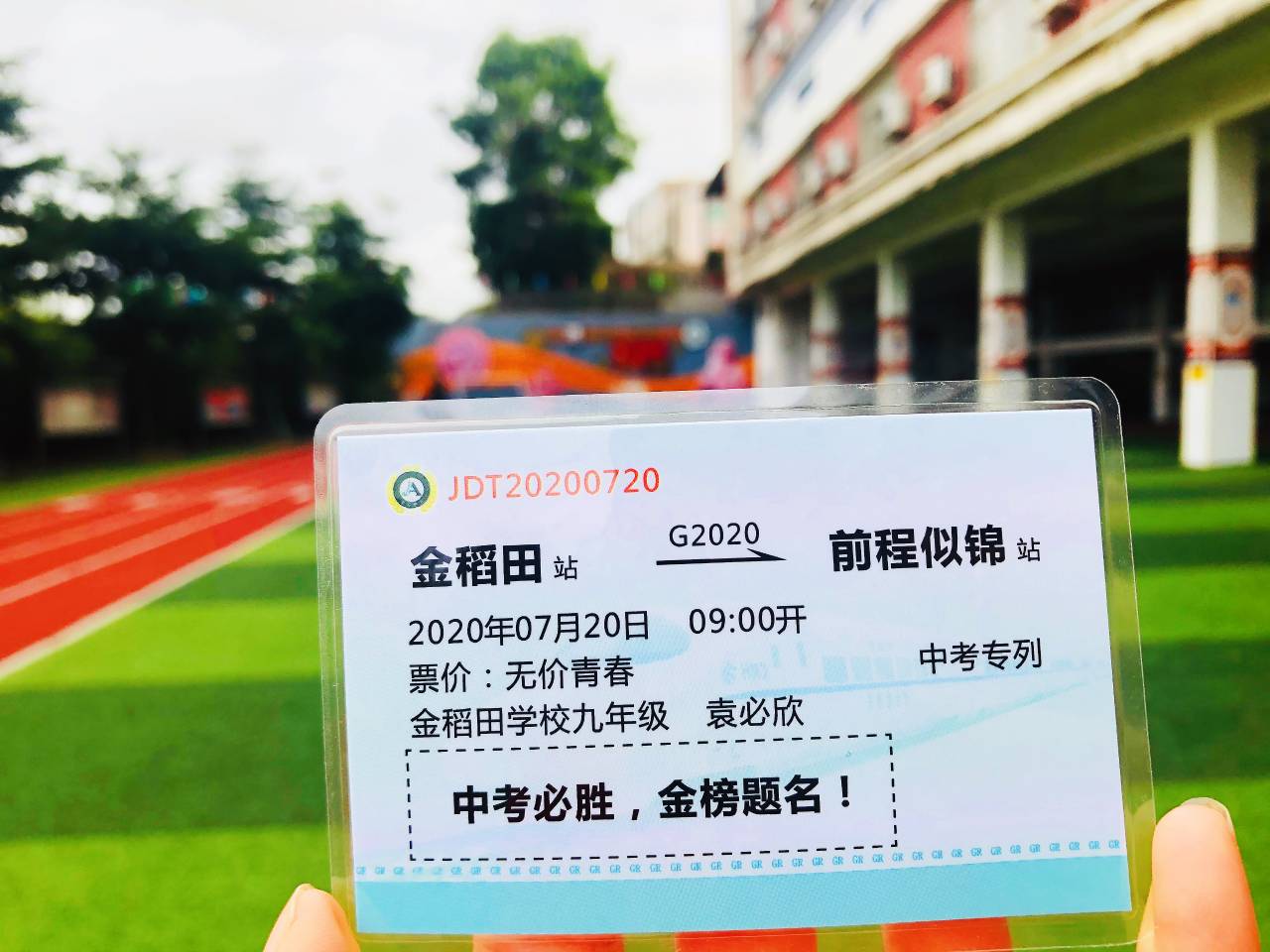 龍崗區(qū)金稻田學(xué)校的學(xué)子們趕往考場前,校長老師們送上了“護考車票”,通往“前程似錦”!目前,學(xué)子們在交警的護送下已順利到達考場。(記者李麗、周紅聲)