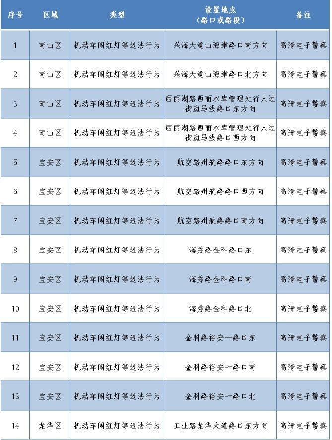 見圳客戶端·深圳新聞網(wǎng)2020年7月28日訊 為保障道路的通行有序和安全,加大對(duì)機(jī)動(dòng)車違法行為的非現(xiàn)場執(zhí)法力度,保障深圳道路交通安全暢順。近期,深圳交警根據(jù)《道路交通安全違法行為處理程序規(guī)定》(公安部令105號(hào))第十六條規(guī)定,依法公布啟用262套交通技術(shù)監(jiān)控設(shè)備。