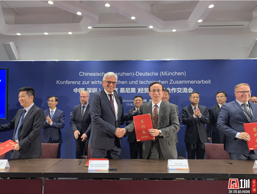 2019年6月,深信院與寶安區(qū)人民政府、德國烏爾姆TFU科技園、德國史太白經濟促進基金會在德國慕尼黑正式簽署四方聯(lián)合共建的“灣區(qū)中德教育與經濟協(xié)同發(fā)展示范基地”合作框架協(xié)議。