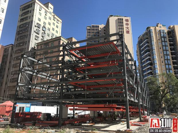 正在施工的羊臺(tái)新村機(jī)械立體車庫(kù)。