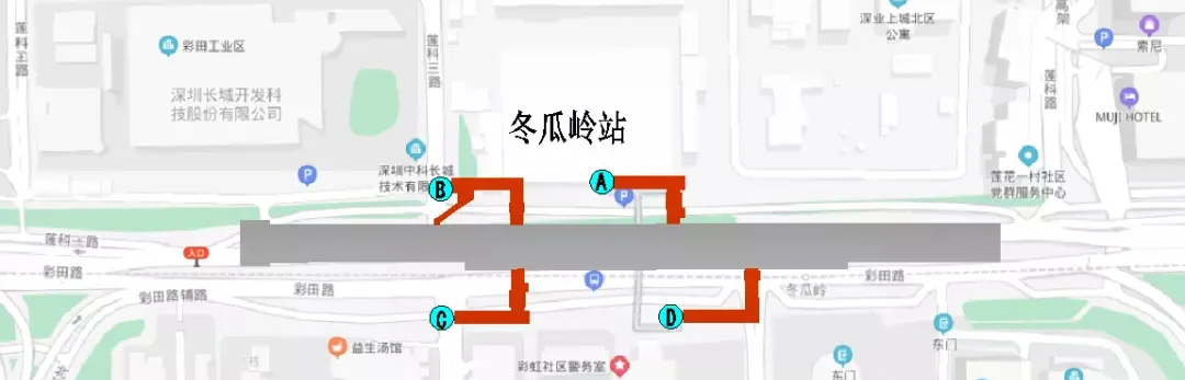 ▲冬瓜嶺站出入口分布示意圖