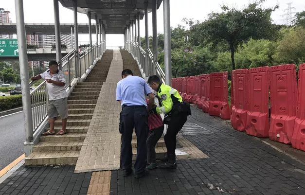 8月5日上午,深圳交警鐵騎巡邏至北環(huán)大道西往東方向珍珠嶺天橋路段輔道轉(zhuǎn)主道路口時(shí),發(fā)現(xiàn)一位老太太躺在路中間。