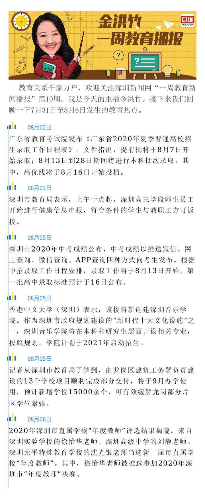 一周教育播報|第10期:深圳公布中考成績?“年度教師”評選揭曉