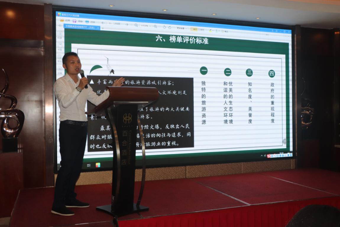 中國(guó)最美縣域榜單融媒體主任李帥向與會(huì)嘉賓介紹中國(guó)最美縣域榜單,并希望各地認(rèn)真踐行“綠水青山就是金山銀山”發(fā)展理念,建設(shè)“最美縣域”,共圓“美麗中國(guó)”夢(mèng)。