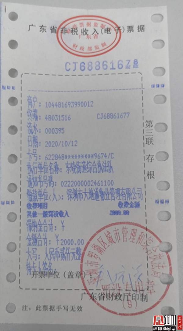 深圳新聞網(wǎng)訊 (見圳客戶端、深圳新聞網(wǎng) 記者 彭桂紅 通訊員 吳清慶)9月1日,《深圳市生活垃圾分類管理條例》正式實施,經(jīng)過一個月的執(zhí)法警示期,10月起,深圳垃圾分類進入集中執(zhí)法階段,對不開展垃圾分類等行為正式開罰。記者10月14日獲悉,深圳市羅湖區(qū)東曉街道執(zhí)法隊10月12日,開出轄區(qū)首張物業(yè)罰單,對深圳市大地通物業(yè)管理有限公司因垃圾分類投放點和收集容器未保持整潔立案查處,作出罰款人民幣2000元的行政處罰。行政處罰相對人已依法繳納罰款。