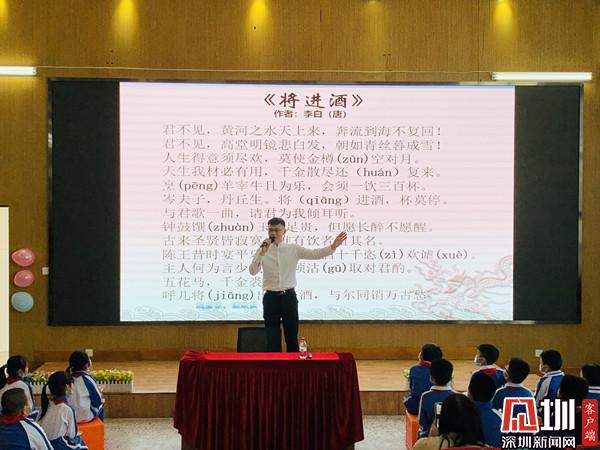 深圳新聞網(wǎng)訊(深圳新聞網(wǎng)記者 彭桂紅 通訊員 梁文雅)為進(jìn)一步弘揚(yáng)中華優(yōu)秀傳統(tǒng)文化,近日,深圳市錦田小學(xué)特邀青年文化學(xué)者、深圳市百姓學(xué)習(xí)之星、深圳市公益閱讀推廣人、深圳市首屆家園文化文學(xué)會(huì)會(huì)長(zhǎng)晉玉東為廣大師生開展了一場(chǎng)別開生面的“中國(guó)古典詩(shī)詞朗誦藝術(shù)鑒賞——兼談如何朗誦好一首詩(shī)”公益文化講座。羅湖區(qū)錦田小學(xué)德弘校區(qū)副校長(zhǎng)劉向陽(yáng)、羅湖區(qū)錦田小學(xué)德弘校區(qū)主任張俊暉、羅湖區(qū)未來學(xué)校主任謝淑紅、德弘二年級(jí)家委代表以及語文科組老師,一同參加?;顒?dòng)由班主任梁文雅和學(xué)生劉沛東、張家琪共同主持,近200名學(xué)生參加了講座活動(dòng)。整場(chǎng)講座師生熱情高漲,主講嘉賓深入淺出、娓娓道來,參與學(xué)生思維活躍、表現(xiàn)積極,帶動(dòng)校園形成了學(xué)習(xí)詩(shī)詞文化的良好氛圍。