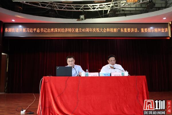 見圳客戶端·深圳新聞網(wǎng)11月26日訊(記者 劉晨 通訊員 魏官明 陳惠冰)11月26日下午,深圳市羅湖區(qū)東湖街道舉行習(xí)近平總書記出席深圳經(jīng)濟特區(qū)建立40周年慶祝大會和視察廣東重要講話、重要指示精神宣講報告會,活動特邀羅湖區(qū)委宣講團成員、區(qū)發(fā)展研究中心黨組書記、主任王西星作主題宣講。 街道黨政領(lǐng)導(dǎo),街道各辦、中心業(yè)務(wù)負責(zé)人,各社區(qū)黨委書記、副書記,股份公司董事長,街道機關(guān)各黨支部及各社區(qū)黨建組織員、黨員共100余人參加了宣講活動?;顒佑山值傈h工委副書記、人大工委主任謝統(tǒng)敏主持。