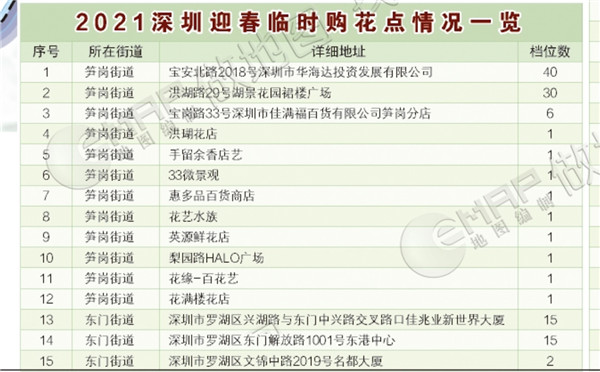 2021深圳迎春臨時(shí)購花點(diǎn)情況一覽。